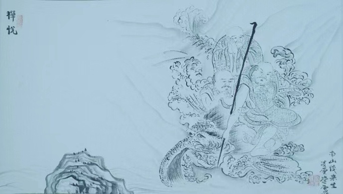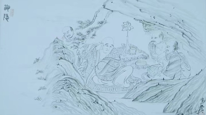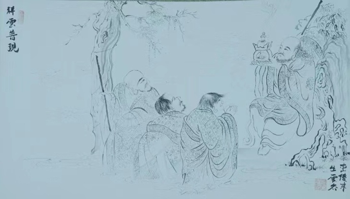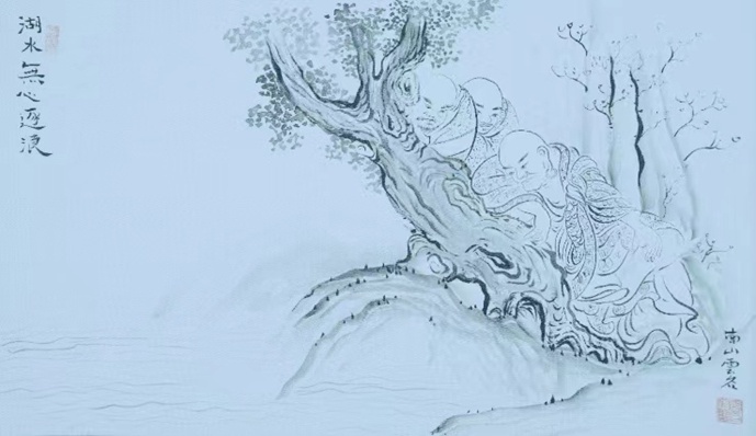 雲谷博士歷時三年對百卷羅漢卷參悟,而共用六載,以參悟南宗畫派第九代祖師石濤禪師之法,以心印心,以御製此卷,傳祖師禪畫心燈之法,承續文脈,續寫新境。