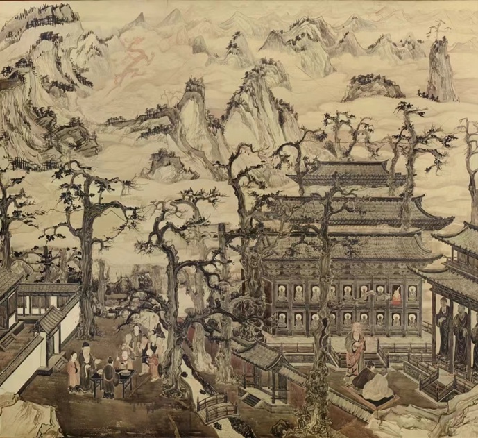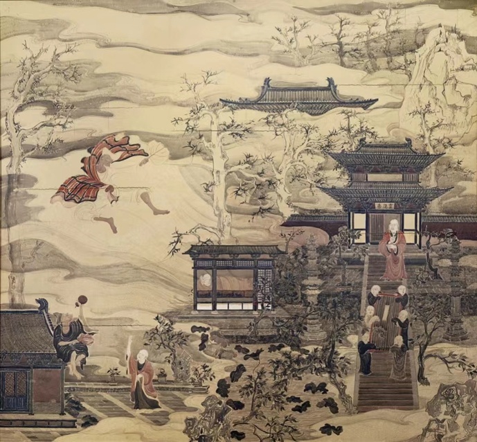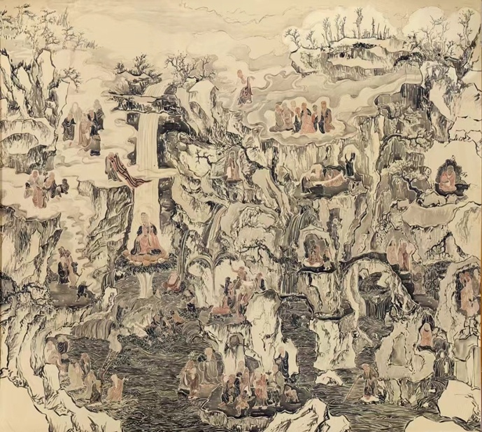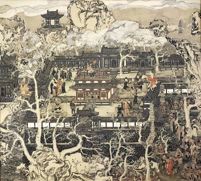 林海鐘導師,深受五代諸師之影響,宋代古意之啟迪,參詳六朝精奧,而自創新派,引領當今禪畫之潮流,開創當今南方壁畫之先河。