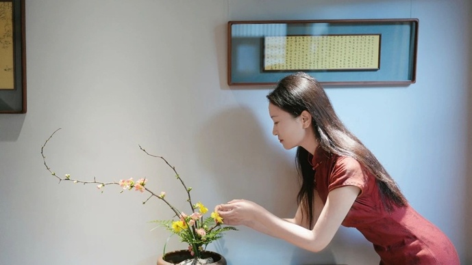 傳統插花藝術崇尚自然簡約之美,善於用綫條造型營造作者所心中追求的境界,充分表現出中華文化的審美追求和人文表達。