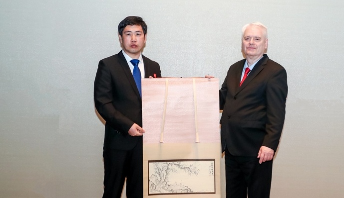 國務院國賓禮特供藝術大師雲谷御畫 [ 喫茶過程見真心 ] 當選為國禮贈予克羅地亞伊沃·約西波維奇總統並合影留念。