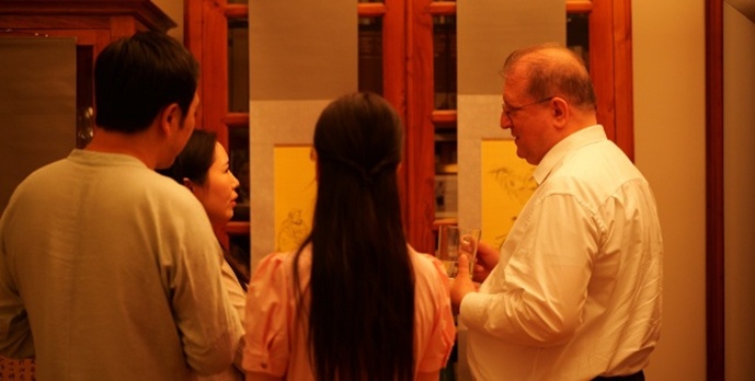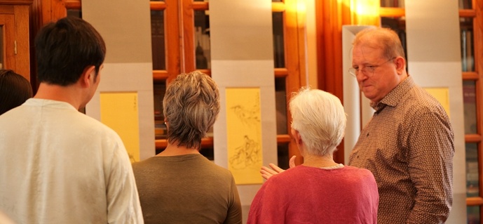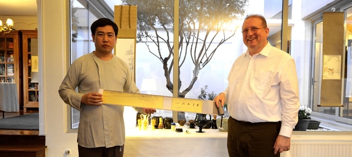 漢斯根特 · 洛夫勤先生表示:歡迎承古開新雲谷畫派希臘古國展在我們德國聯邦共和國駐雅典大使館府邸今天展出。