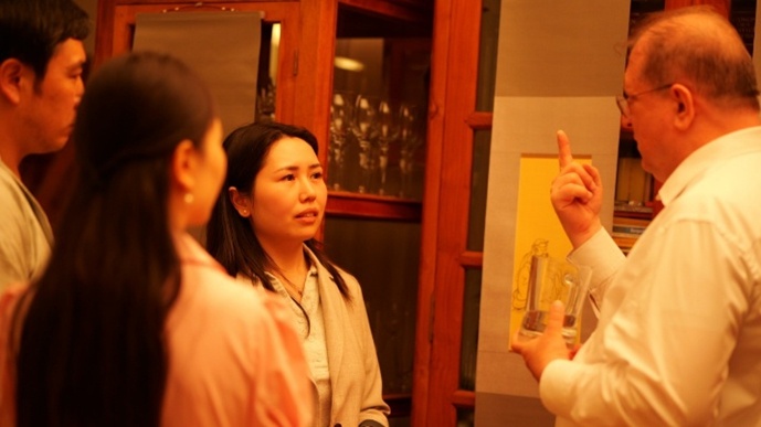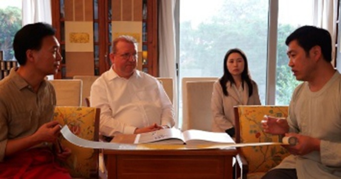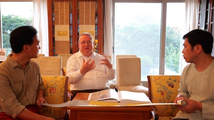 雲谷藝術院院長吳柳先生與漢斯根特 · 洛夫勤先生進行深入的文化交流,由文化外事翻譯官吳瑕女士進行翻譯。