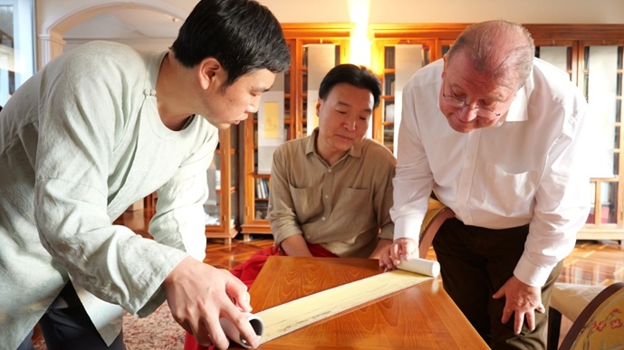 德國聯邦共和國駐雅典大使館、德意志聯邦共和國駐雅典大使館高級外交官漢斯根特 · 洛夫勤先生收藏雲谷御制的 [ 萬年西湖] 御卷。