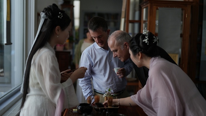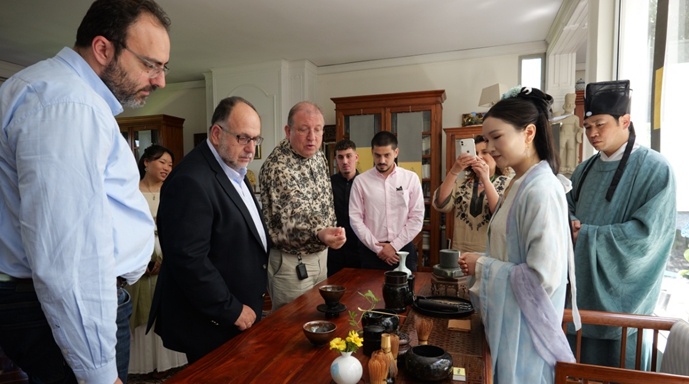 承古開新,雲谷禪畫、雲谷御畫、雲谷御禮在希臘古國展出,誠邀十國使館使節和政要蒞臨參加,體騐專屬的雲山茶會的世界,沉浸於無與倫比的尊貴時光,這是一場雲谷御院宋代茶會之盛宴,共鑒來自宋代文脈的承續。